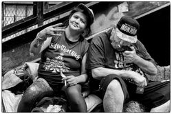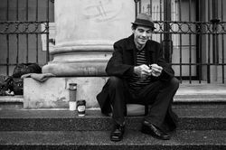 ![]() Moroccan camel driver at Erg Chebbi, the extreme western side of the Sahara. Morocco | ![]() A Fadista. Lisbon, Portugal. | ![]() Blood Alley, Vancouver B.C. | ![]() Street people are kind and generous. From far I saw this man sharing his food with the guy and his dog sitting across the street. How inspiring! |